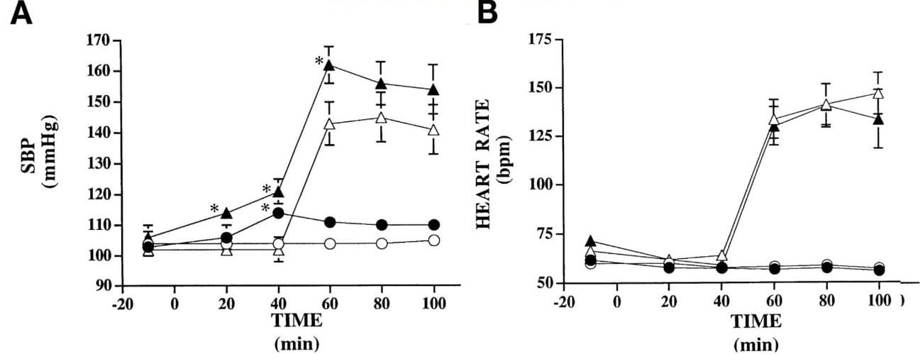 Tu corazón y tus vasos sanguíneos también son sensibles a la cafeína. Del mismo modo que en tu cerebro, inhibe la acción de los receptores de adenosina, pero también antagoniza la enzima fosfodiesterasa y potencia ligeramente la acción del sistema nervioso simpático (fuente, fuente). Ello tiene un efecto neto, y es que el consumo agudo de café provoca un incremento transitorio en la presión arterial (de unos 10 mmHg) y la frecuencia cardíaca. Estos efectos son más notorios en individuos que no consumen café regularmente y tienden a disminuir con el consumo habitual.