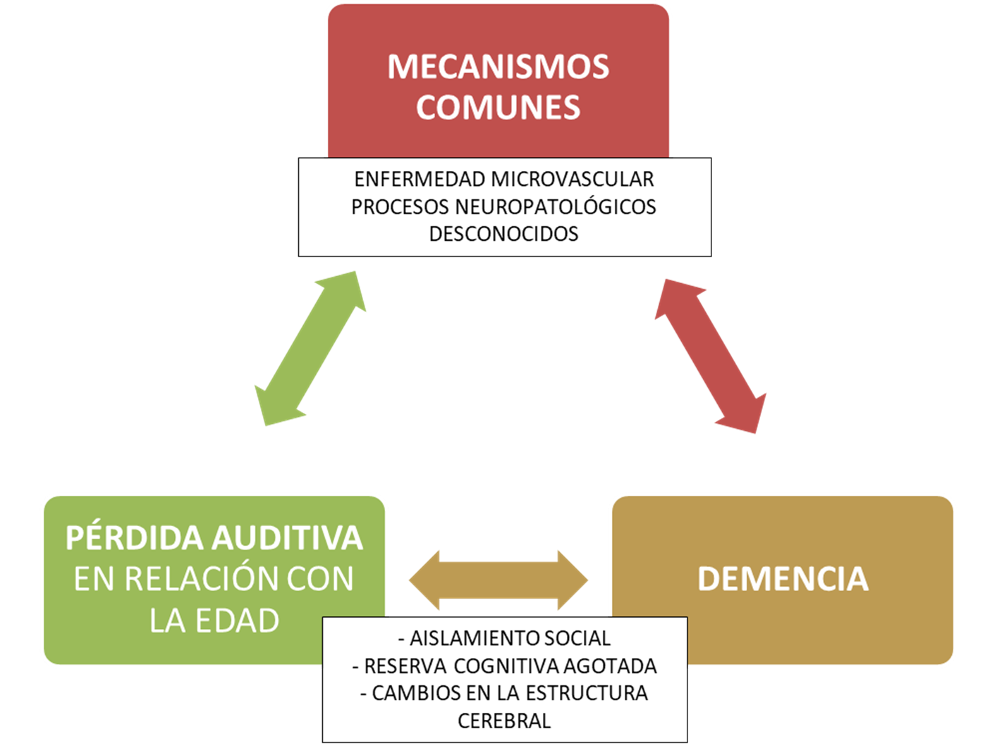 El proceso es multifactorial y bidireccional. La pérdida auditiva y la demencia no solo se asocian entre sí, sino que se retroalimentan a través de varios mecanismos. Por un lado, comparten posibles causas comunes, como la enfermedad microvascular o procesos neuropatológicos aún desconocidos, que pueden predisponer a ambas.